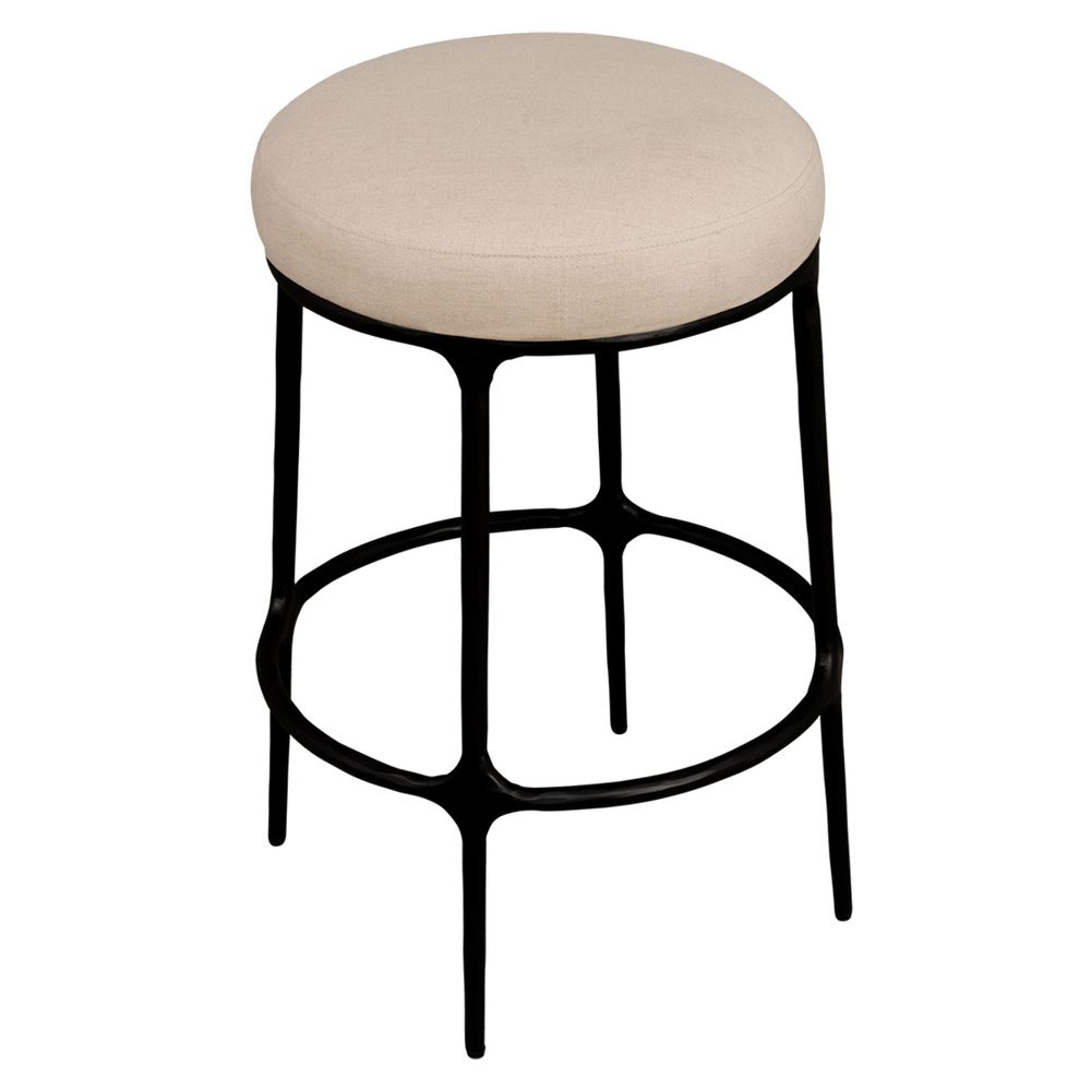 Experience timeless elegance with our Heston Kitchen Stool collection, seamlessly blending the rustic charm of hand-forged solid iron frames with organically smoothed upholstery in black 100% cotton or natural 100% linen. Crafted for versatility, their fine silhouette adds an airy feel to any space. Each stool, meticulously handcrafted by artisans, boasts a unique, imperfect texture, enhancing its organic appeal. Upgrade your kitchen with Heston's artisanal craftsmanship and enduring sophistication.