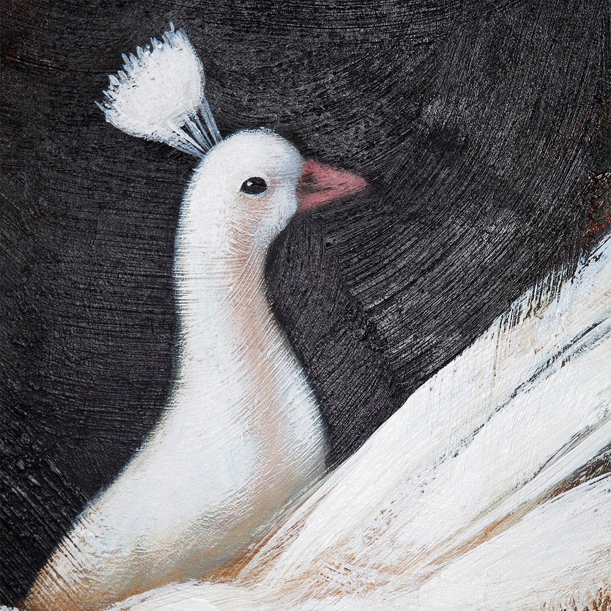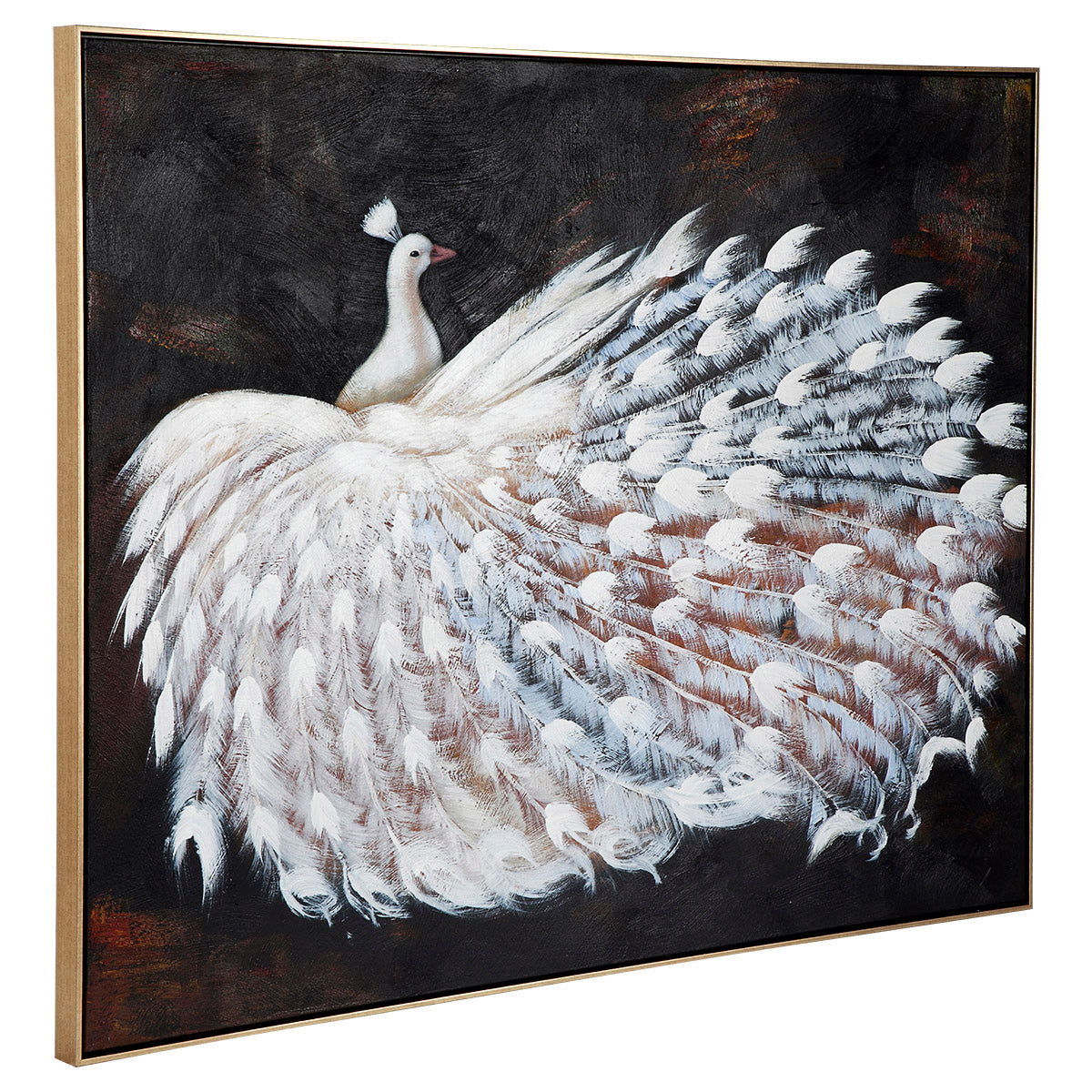 Black base with gold glimmer and white peacock oil painting on canvas.