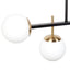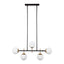 Art Deco forms are reimagined with a modern minimalist sensibility in the Maddox collection. Opal glass spheres have been symmetrically placed across a black frame, with Antique brass accents adding the perfect amount of polish and contrast.