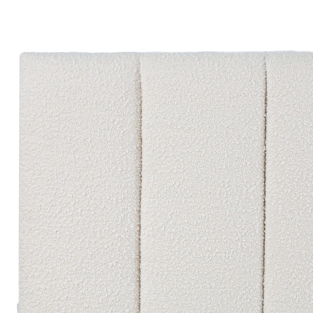 A beautiful complement to any interior, the Soho king bedhead features detailed panelling upholstered in a gorgeous white boucle. Making a striking statement as a sophisticated centrepiece to any bedroom setting, the Soho king bedhead is classic contemporary in design, visually softening your space with its tactile fabric and vertical tufting. Constructed from wood it enjoys quality craftmanship with the upholstered panelling continuing all the way to the floor. Pair the Soho king bedhead with the matching Soho storage bench ottoman for the ultimate in tailored interiors.