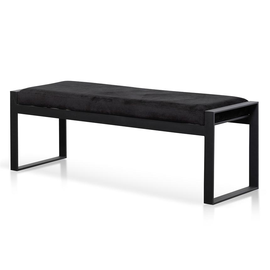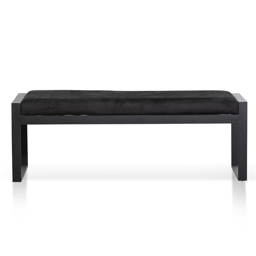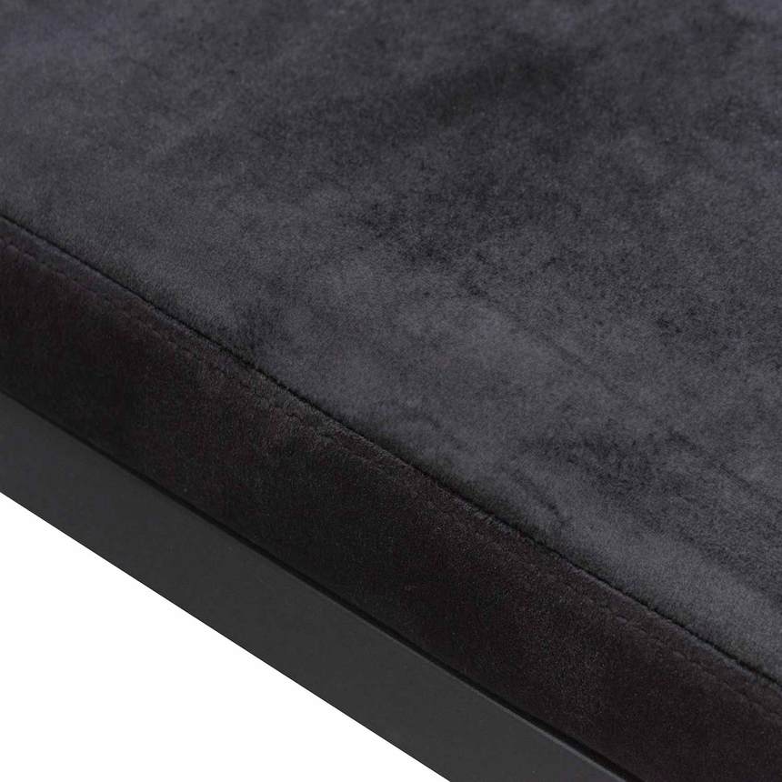 Matte black steel construction Seat cushion upholstered in a black velvet Square sled style base Seat rest sits plush within frame Matching all black colour palette Product comes fully assembled