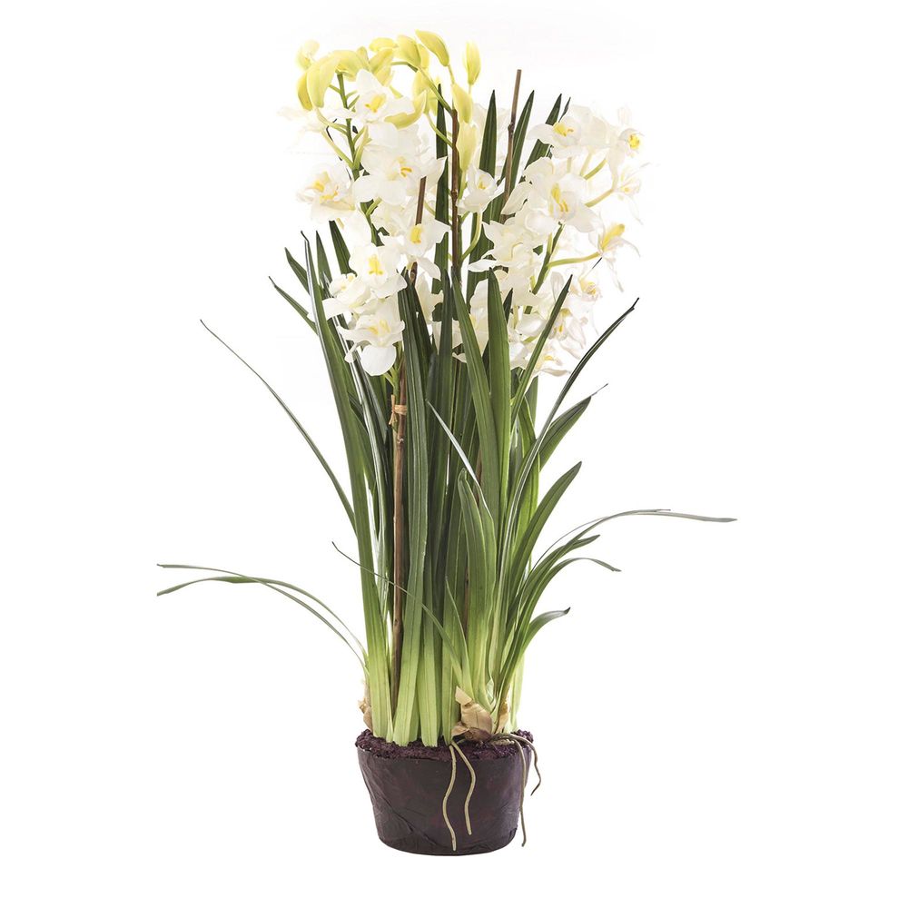 Introducing our stunning Artificial Cymbidium Giant Paper Pot, measuring 110cm in height and featuring a beautiful white color. This exquisite orchid is nestled within a rustic paper pot, adding a touch of natural charm to any space. Its large blooms and long, slender leaves demand attention and exude a sense of grandeur. Perfect for adorning a grand foyer, elevating a formal dining space, or adding a touch of elegance to a contemporary office setting. Made with high-quality plastic and iron wire, this orchid is both durable and visually stunning.