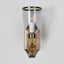 Introducing our Westbrook Sconce Brass W/Glass Shade, a classic and beautiful wall sconce that will add a touch of elegance to any room. The clear glass and metal rim on top create a stunning visual, while the candle drip plastic inside the glass adds a decorative element and supports the bulb for perfect ambient lighting. This versatile light fixture can be installed in both up and down positions, making it perfect for any indoor area.