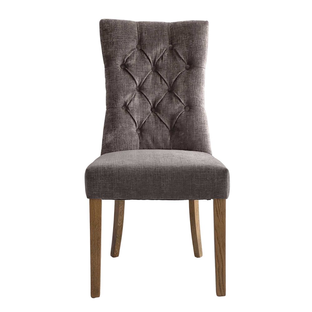 Diana Buttoned Hamptons Dining Chair Silver Grey Linen Blend