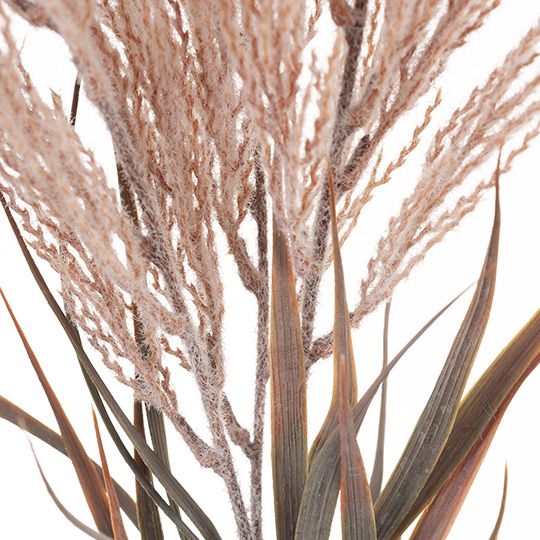 Bring the garden indoors with this gorgeous faux plume grass spray. Easily maintained this beautiful artificial spray will bring lasting beauty into your home or interior space. Create a one of a kind artificial arrangement mixing this plume grass spray with other stems or place in a decorative vase on its own. For longer lasting faux flower stems keep out of direct sunlight.