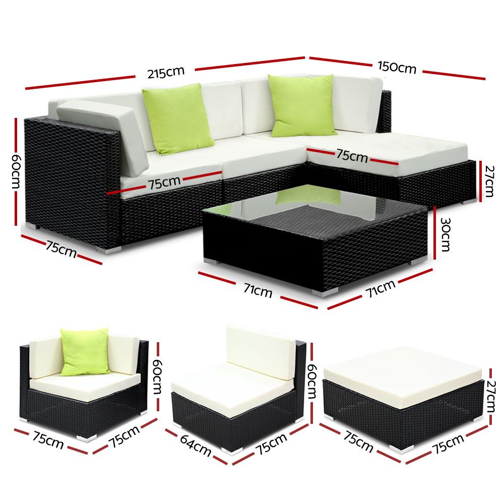 Gardeon 5PC Outdoor Furniture Sofa Set Wicker Garden Patio Pool Lounge