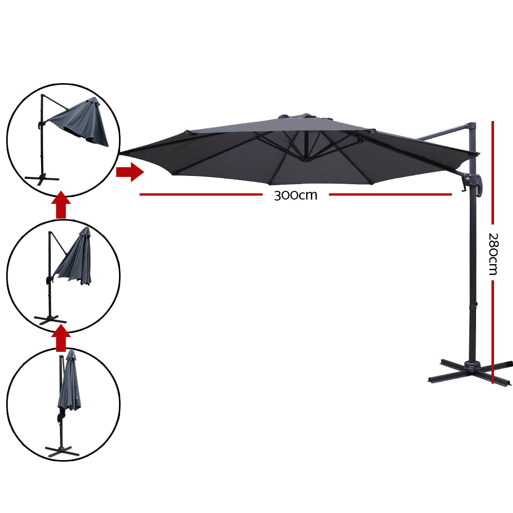 Instahut 3M Roma Outdoor Furniture Garden Umbrella 360 Degree Charcoal