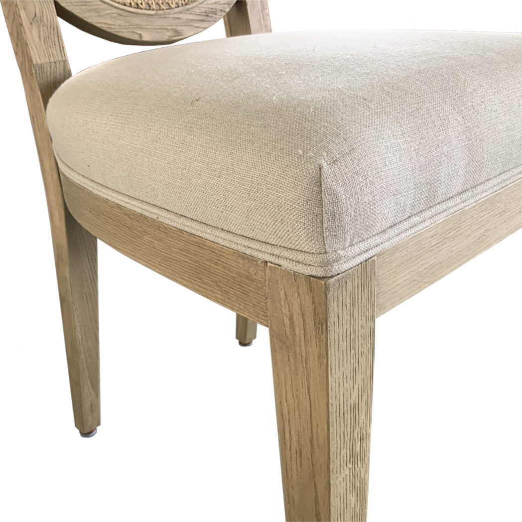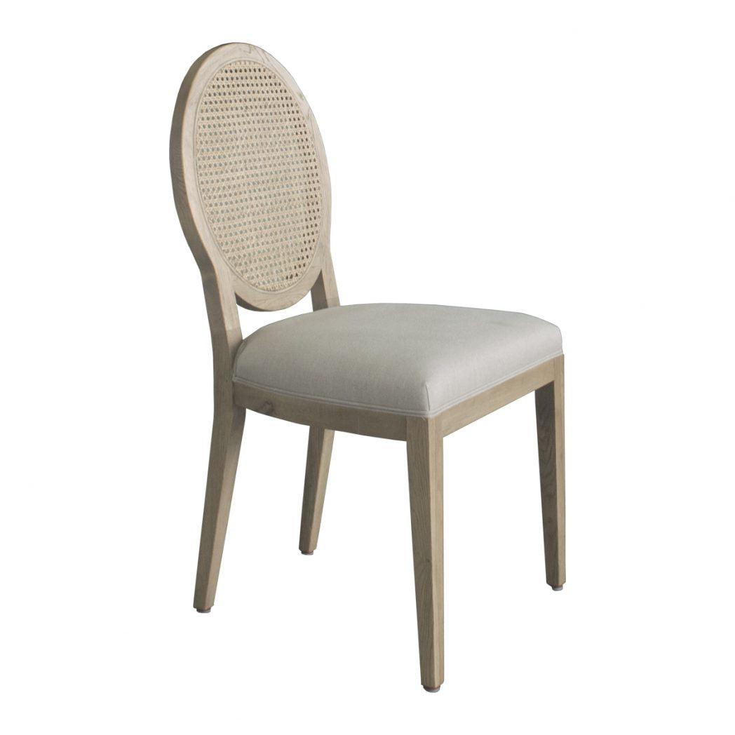 Handcrafted of solid oak timber, Weathered oak finish, Rattan back, 100% linen upholstery