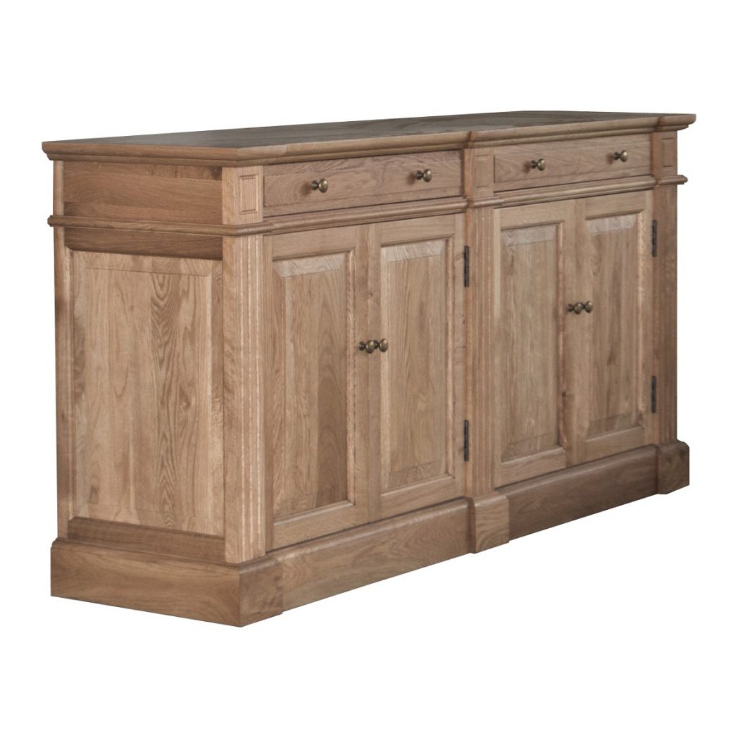 Handcrafted of solid oak wood in natural finish, Two drawers plus four doors with one shelf in the base