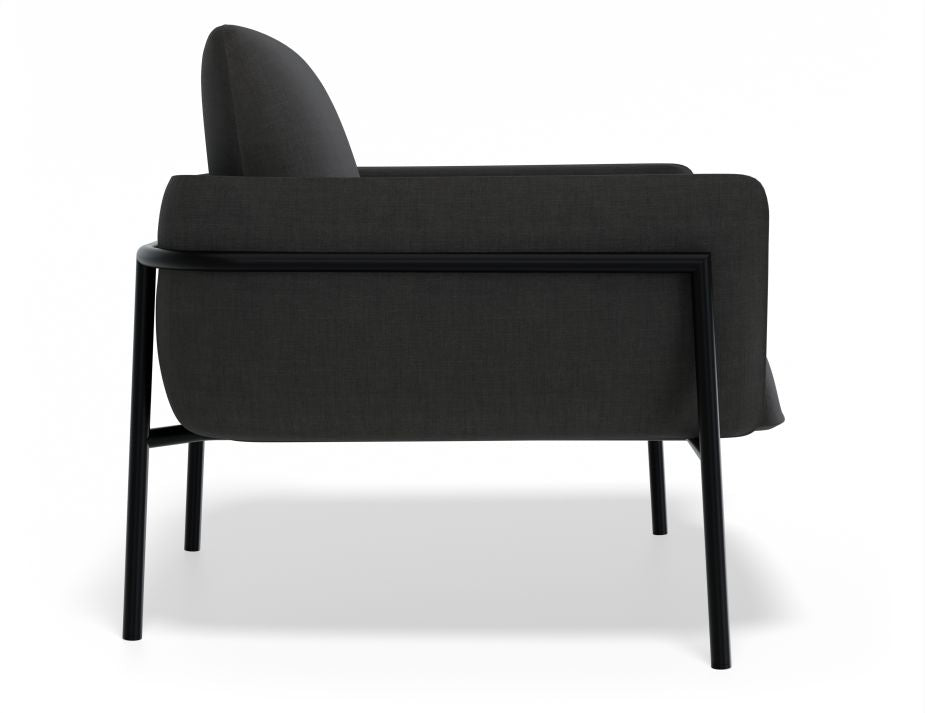 The armchair's sleek, dark grey design seamlessly integrates into various room settings. Whether placed in a modern office space, a stylish hotel suite, or a sophisticated lounge, its effortless adaptability caters to a wide range of interior design preferences, making a bold and stylish statement while ensuring comfort and luxury.