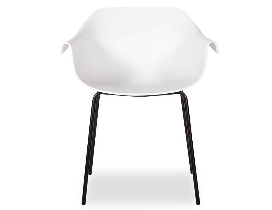 Seat Height : 45cm, Height : 76cm, Depth : 40cm, Width : 62cm, Colour : White, Seat Material : Injected Polypropolene, Frame : Black Satin Powder Coated Steel
