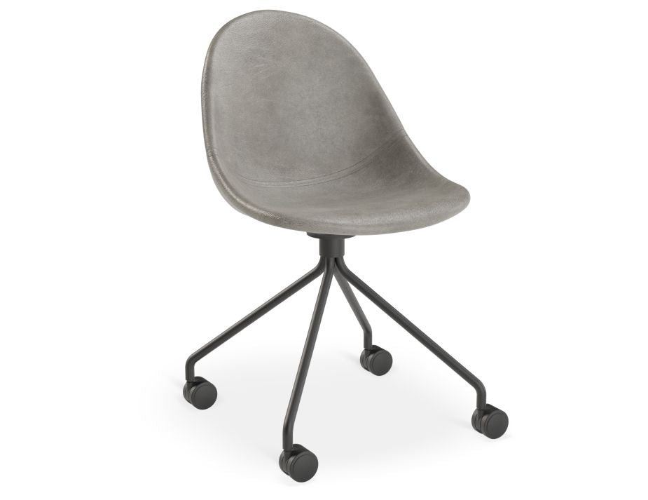 Introducing the Pebble Chair Grey Upholstered Vintage Seat, the perfect addition to any modern office or restaurant space.