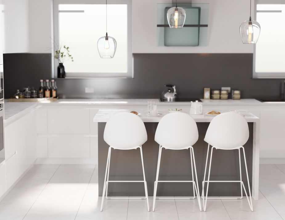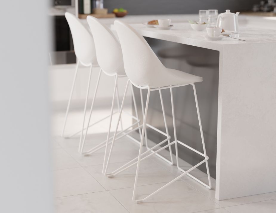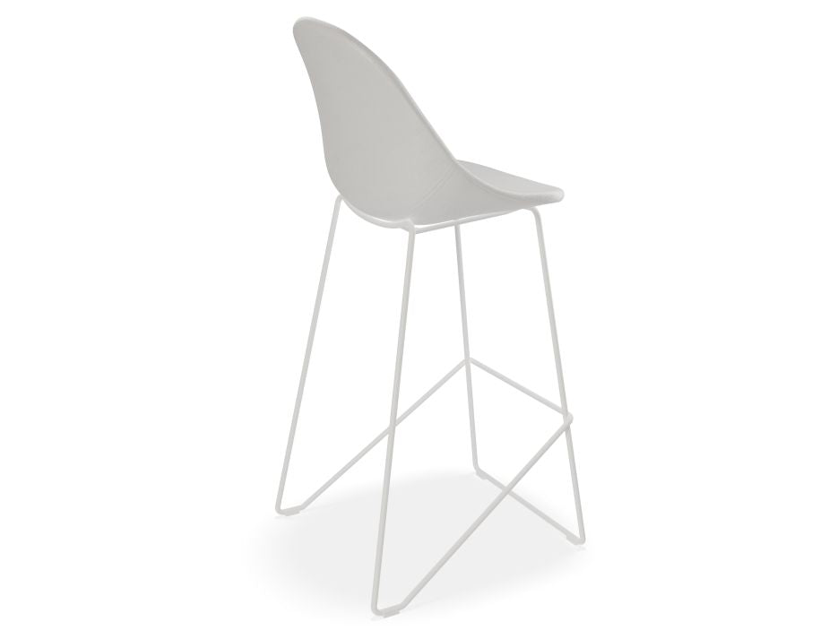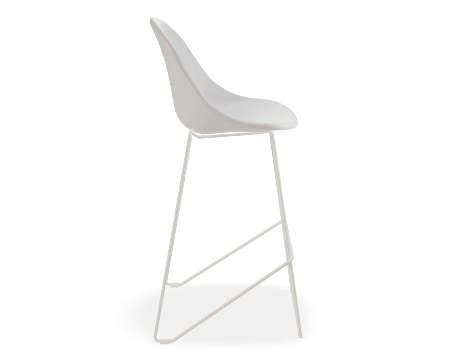 Pebble Stool White Upholstered Seat - Bar Stool 75cm Seat - White Base