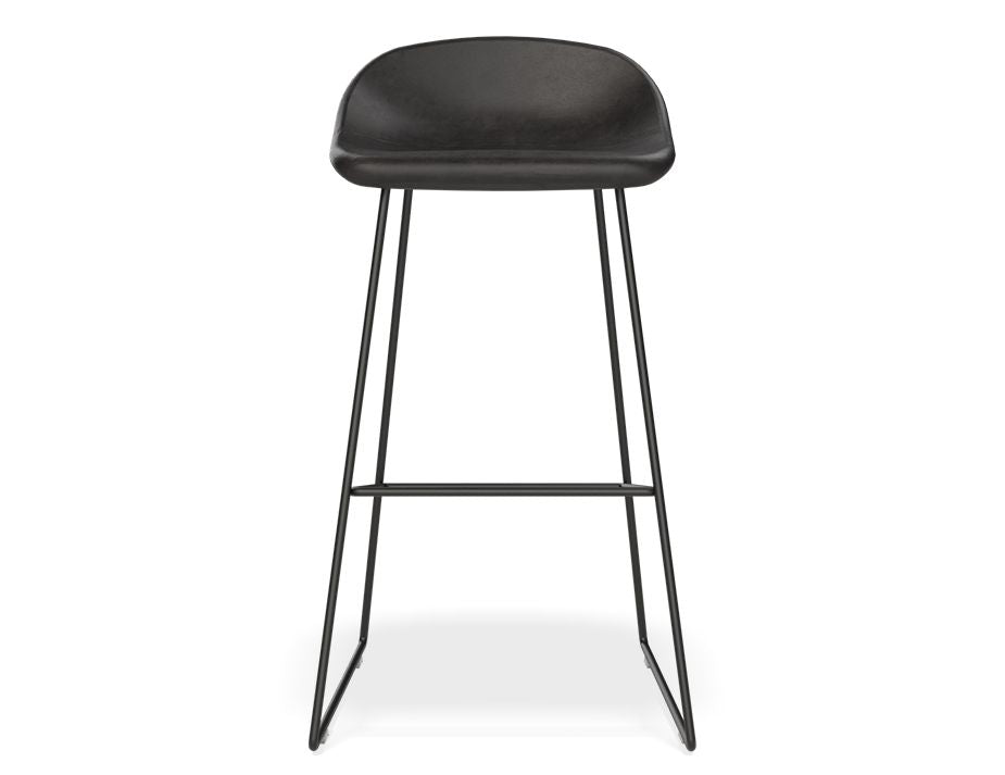 Introducing the Pop Stool with a sleek black frame and a vintage black seat, the perfect addition to any bar furniture collection.
