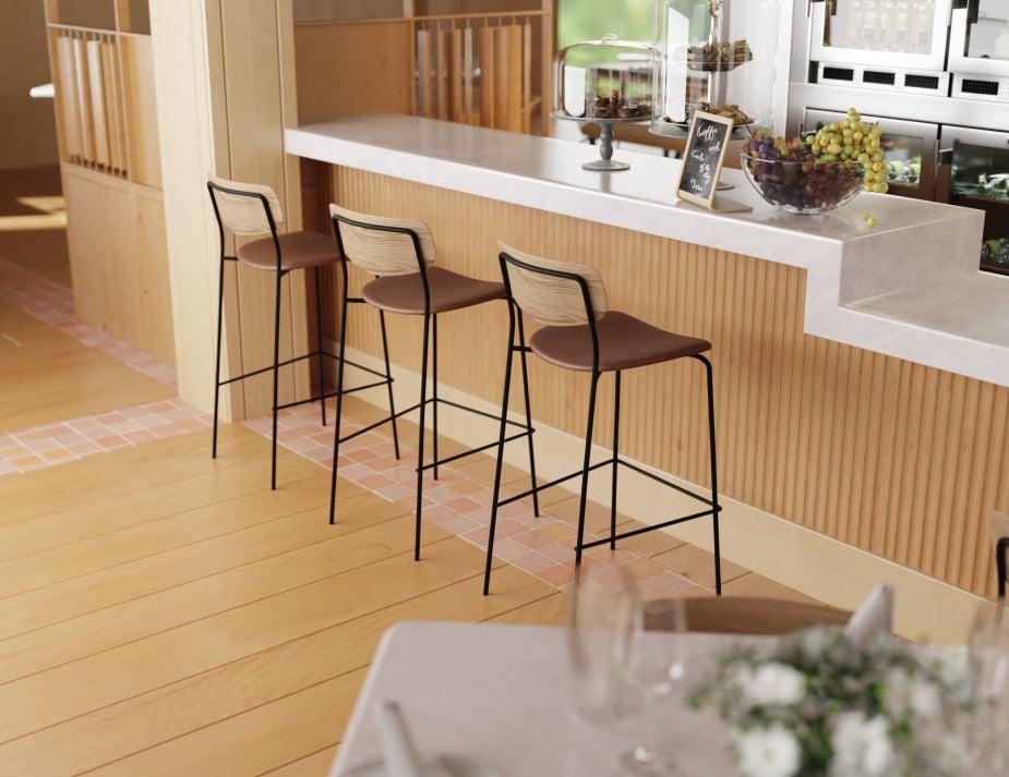 The Rylie barstool with its Padded Seat and Natural Backrest is the true epitome of contemporary design and timeless elegance. Crafted with meticulous attention to detail, this counter stool boasts a seamless blend of modernity and natural charm. The natural backrest showcases the beauty of responsibly sourced wood, adding a touch of rustic allure to the overall aesthetics. With its clean lines and sophisticated design, the Rylie barstool becomes an exquisite addition that elevates the ambience of any space.