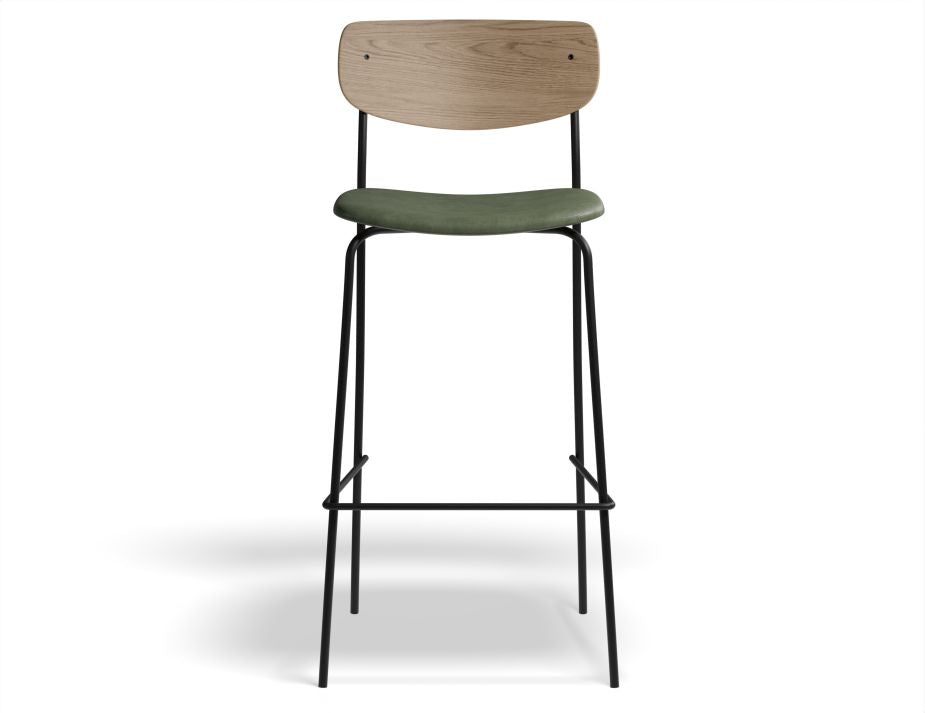 Rylie Stool - Padded Seat with Natural Backrest - 75cm Bar Height - Green Vegan Leather Seat
