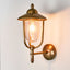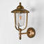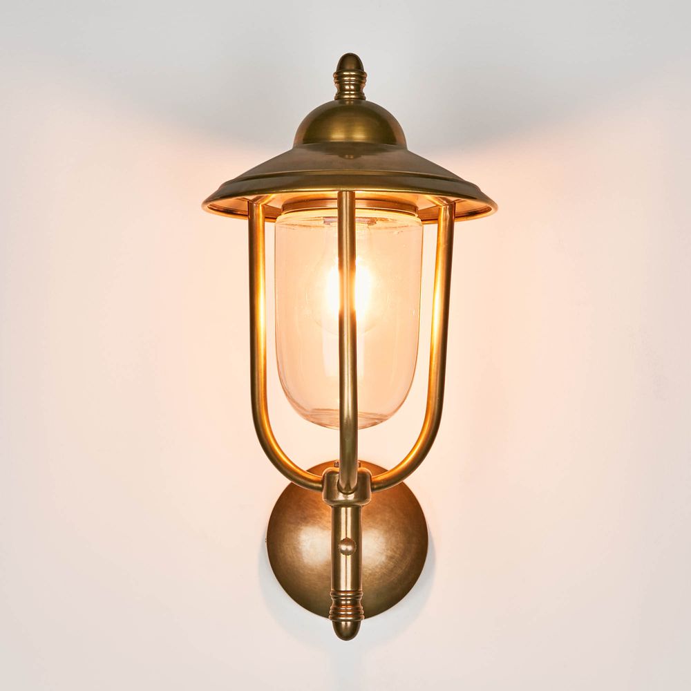 Inspired by classic gas street lights before the time of electricity, the Pier wall lamp is a unique and classical design that adds to the sophistication of house or office, inside or out. Pier is IP-rated 54 outdoor wall sconce with clear glass and brass metal cage, which suitable for indoor and outdoor use. This lantern style wall lamp is used mainly for outdoor garden lamp, patios and entryways. With sleek appearance, it can also be used in bathroom as side mirror lights to match any industrial, rustic or loft-style decor.