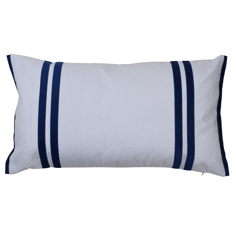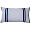 A classic striped applique lumbar cushion with flanged ends and velvet backing combined beautifully with crisp white cotton.