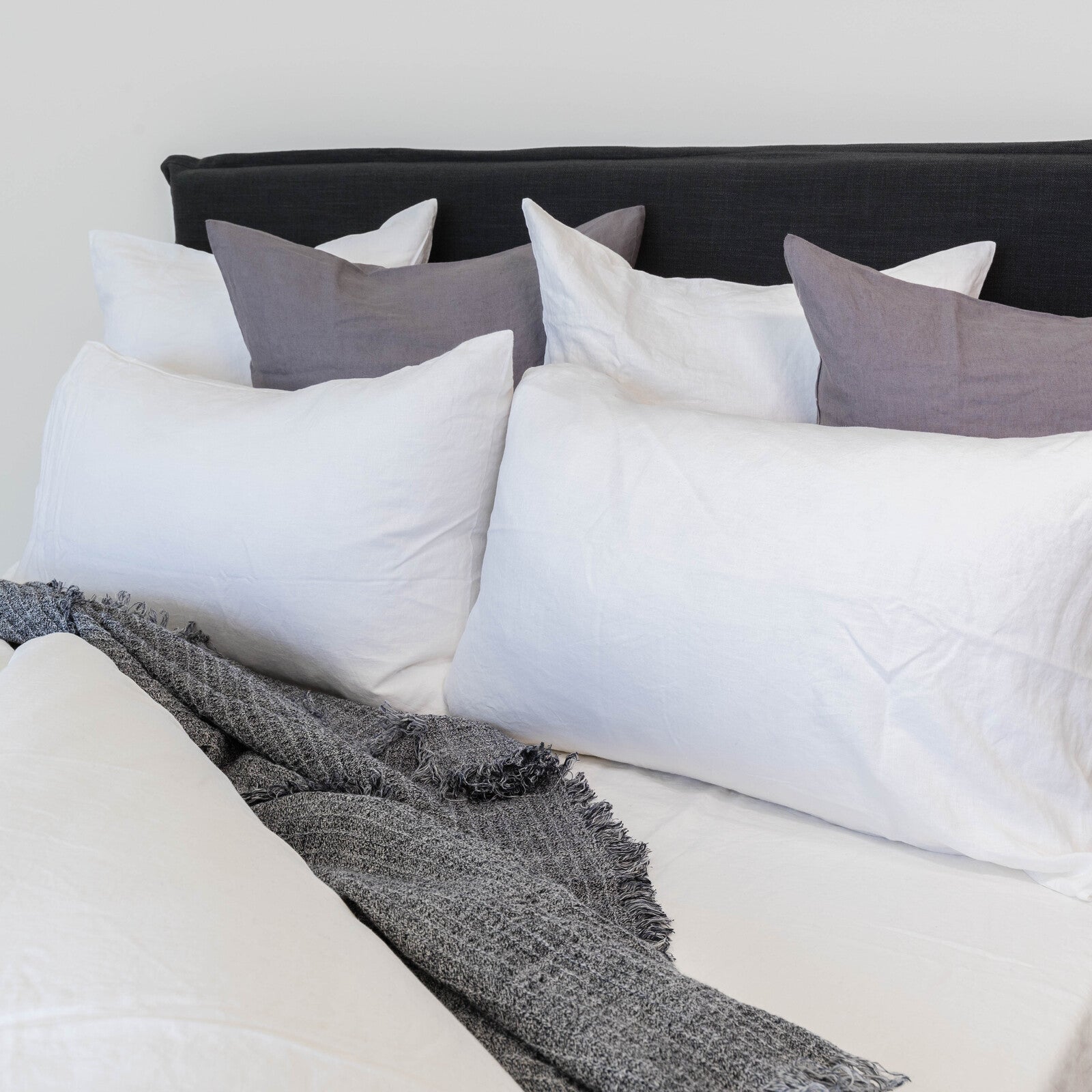There's nothing like linen! These beautiful Euro Linen Pillowcases are smooth and cool to touch and adds a luxurious extra layer alongside other linen pieces. Cool in summer, cosy in winter, this 100% pure linen keeps you comfy year-round. Plus, linen only gets better over time! Beautifully packaged in matching linen drawstring bags. Measurements: 60x60cm Colours in order of image: Alabaster, Buckwheat, Chestnut, Charcoal, Crisp White, Clay, Nature, Orchid