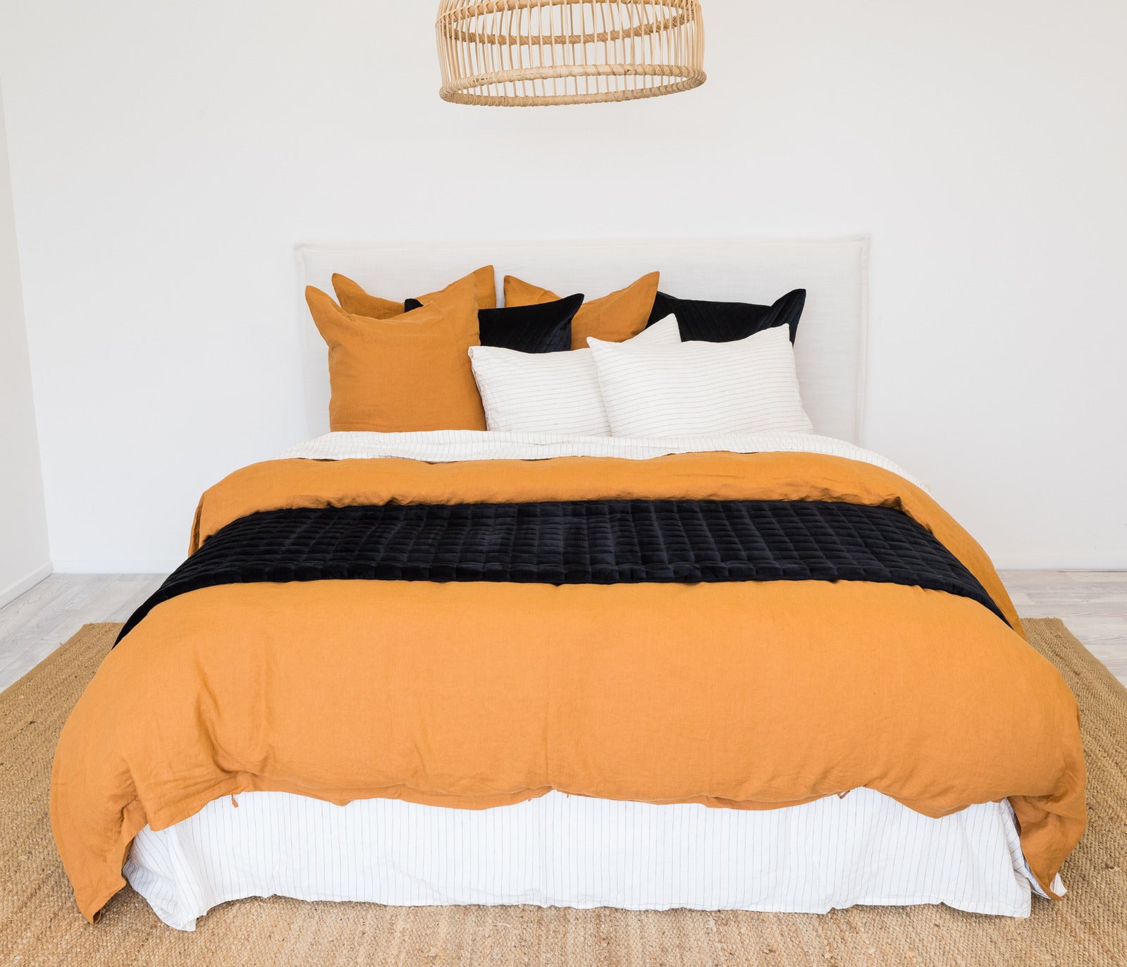There's nothing like linen! This beautiful Linen Doona in Clay is smooth and cool to touch and adds a luxurious extra layer alongside other linen pieces. Cool in summer, cosy in winter, this 100% pure linen keeps you comfy year-round. Plus, linen only gets better over time! Beautifully packaged in matching linen drawstring bags. Measurements: Queen Doona 210x210cm, Pillow Cases 50x75cm King Doona 245x210cm, Pillow Cases 50x75cm