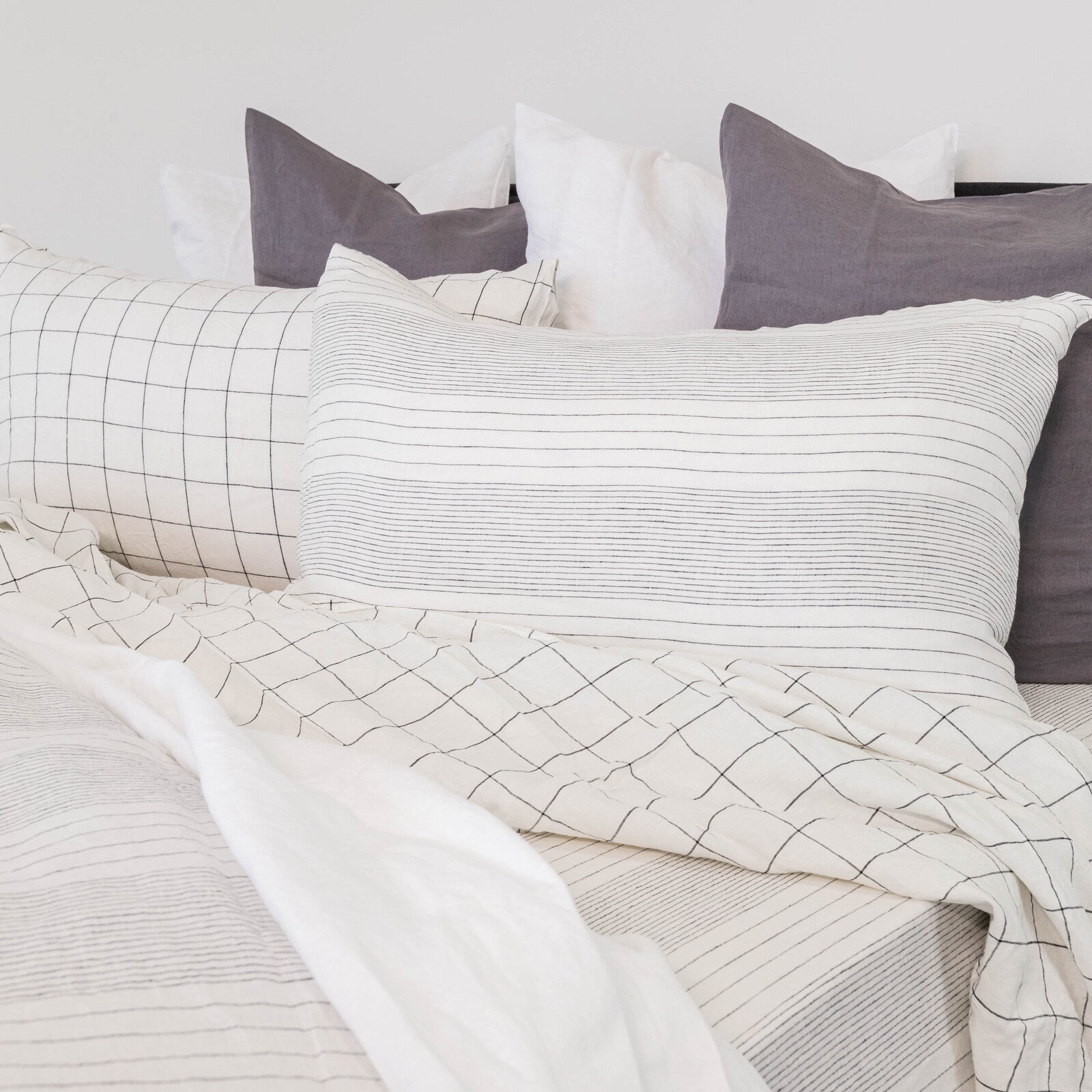 There's nothing like linen! These beautiful Linen Sheets in our popular Black Wave Line are smooth and cool to touch and adds a luxurious extra layer alongside other linen pieces. Cool in summer, cosy in winter, this 100% pure linen keeps you comfy year-round. Plus, linen only gets better over time! Beautifully packaged in matching linen drawstring bags. Measurements: Queen Sheets: Flat 245x274cm, Fitted 152x203x40cm, Pillow Cases 50x75cm King Sheets: Flat 260x274cm, Fitted 182x293x40cm, Pillow Cases 50x75cm